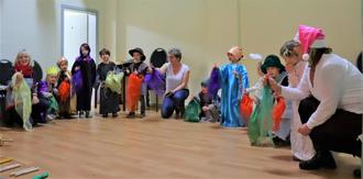 Die Kinder von St. Martin mit Ricarda Kappauf und den Erzieherinnen bei ihrem Programm.