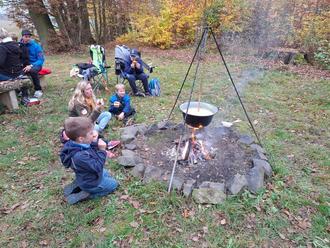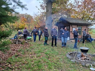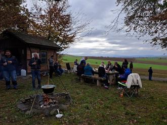Bei angenehmen Herbstwetter machten sich alle Wanderfreunde mit Rücksäcken und Bollerwagen am 31.10.2024 gegen 10:00 Uhr auf den Weg Richtung Hohmannsruh. Dort angekommen, wurden die Tische mit vielen Leckereien eingedeckt, ein Lagerfeuer entzündet und für die Kinder, das alljährliche Highlight - die Schaukel - gebaut.