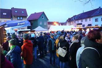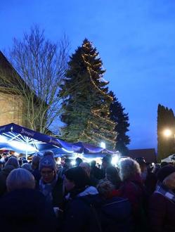 Als sich die Dämmerung herabsenkte, reichte der Marktplatz beinahe nicht aus für die vielen Gäste. Reger Verkehr herrschte auch zur Kirche hin. Dort fanden die kulturellen Beiträge der Kitas und der Chöre statt.