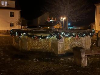 Auch in diesem Jahr erstrahlt der Brunnen auf dem Plan in festlichem Glanz und verbreitet weihnachtliche Stimmung. Die Familien Zimmermann/Neubauer, Stein und Döring haben sich erneut gemeinsam der Aufgabe angenommen, den Brunnen liebevoll als Adventskranz zu schmücken. Nun wird wieder jeden Sonntag eine der vier Kerzen „entzündet“ und lädt die Bewohner und Gäste der Stadt ein, innezuhalten und die besinnliche Zeit des Jahres zu genießen.