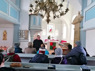 Während des kleinen Vortrages zu ihrer Geschichte in der Bischofrodaer Kirche