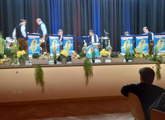 Am Samstag, den 27.01.2024 trafen sich 8 Mitglieder der Seniorengruppe um 17.00 Uhr zur Fahrt nach Creuzburg. Mit den privaten Pkw fuhren wir nach Creuzburg ins Kulturhaus zur Blasmusik. Berthold Schick und seine Allgäu 6 hatten dort zum Konzert eingeladen. Der Blasmusikkönig aus dem Allgäu und seine Musikanten spielten sehr schöne Melodien unter anderem auch von James Last und Ernst Mosch. Es war eine sehr gute Stimmung im Saal. Es wurden auch ein paar Witze erzählt, worüber man schön lachen konnte.