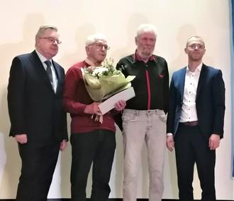 Eckard Krause, zweiter von links, bei seiner Auszeichnung mit Bürgermeister Rainer Lämmerhirt, Andreas Böhme und Michael Klostermann.