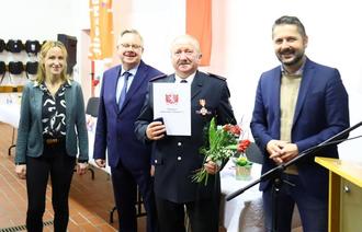 | - | Für 50jährige treue Dienste für die Feuerwehr wurde Kamerad Günther Sülzner mit dem Brandschutzehrenabzeichen am Bande gehrt. |