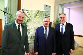 Gemeinsam mit dem Bürgermeister des neuen Preisträgers, Rainer Lämmerhirt, und dem zuständigen Forstamtsleiter Dirk Fritzlar stellte man sich dann zum Foto.