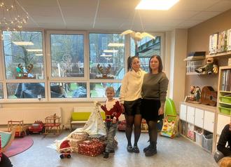 Der Mitarbeiterin Hanna übernahm die Rolle des Weihnachtsengels und überbrachte die großzügige Spende. Die Geschenke reichten von einer Kinderküche, Bücher, Spiele, Lego Dublo, Magnetbausteine, Kamishibaikarten bis hin zu Vorschulmaterialien.