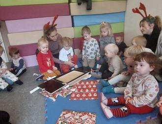 Die Kinderaugen leuchten als die Weihnachtsüberraschung gelüftet wurde. Nach einem kleinen Programm, bei dem alle gemeinsam Lieder sangen und ein Gedicht vorgetragen wurde, konnten die Geschenke ausgepackt werden. Jeder Gruppe wurden Wünsche erfüllt, um unseren Kindergartenalltag mit neuen pädagogischen Spielzeug zu bereichern.