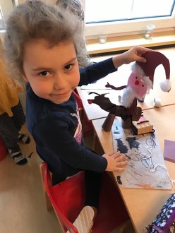 Die ABC-Wichtel studierten außerdem im Dezember ein kleines Weihnachtsmärchen ein, welches sie zu unserer eigenen kleinen Weihnachtsfeier am 14. Dezember vormittags den Kindern und nachmittags den Eltern aufgeführten. Beim Blick aus dem Fenster trugen Väterchen Frost und einzelne kleine Schneeflöckchen in der geheimnisvollen Zeit zur Weihnachtsstimmung bei.