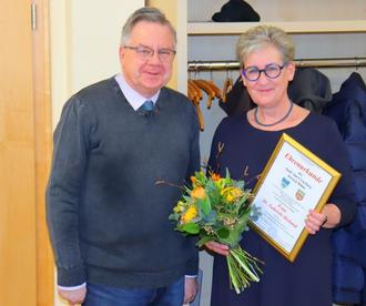 Bürgermeister Rainer Lämmerhirt überreichte ihr mit vielen Dankesworten für ihre langjährige Arbeit für die Patienten eine Ehrenurkunde der Stadt, Blumen und ein Präsent. Gemeinsam wurde mit einem Glas Sekt angestoßen und es gab viele Wünsche für die Zukunft von Frau Dr. Heiland.