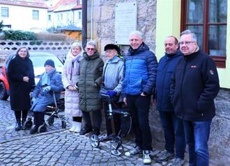 Auch in diesem Jahr trafen sich Frau Pastorin Susanne Breustedt, Ortsteilbürgermeister Ronny Schwanz und Bürgermeister Rainer Lämmerhirt mit einigen Angehörigen der betroffenen Familien zu einer kleinen Gedenkfeier am Rathaus.