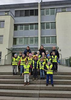 In diesem Vorschuljahr bekamen wir Gelegenheit das Alltagsleben der Polizei mal so richtig unter die Lupe zu nehmen. Unser erster gemeinsamer Ausflug führte uns zu Polizeidienststelle nach Eisenach. Voller Fragen und Spannung machten sich die „neugierigen Wölfe“ auf die Reise. Ein Vormittag bei der Polizei, voller Erwartung und natürlich gutem Benehmen J wurden die Kinder von Herrn Claas am Haupteingang der Polizei empfangen. Im Anschluss durften die Kinder den Überwachungsraum mit Kameras besichtigen. Natürlich stand auch ein Polizeiwagen zur Besichtigung bereit. Ergreifende Stille trat ein, als Herr Claas eine Zellentür öffnete und die Kinder sich darin umschauen durften. In gemütlicher Runde beantwortete dann Herr Claas all die Fragen und hatte für die Kinder einen kleinen Kuchensnack vorbereitet. Als Dankeschön für den tollen Tag übergaben die Kinder Herrn Claas ein selbst gestaltetes Plakat, dass sie in einer Vorschulstunde vorbereitet hatten.