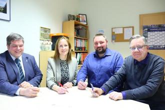 Ein neuer Vorstoß im gemeinsamen Kampf gegen die Verkehrsbelastung in ihren Orten: Bürgermeister Hecht, VG- Vorsitzende Christin Bärenklau, Bürgermeister Markus Fischer und Bürgermeister Rainer Lämmerhirt.