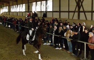 Langsam füllte sich die Reithalle von Familie Groß in Probsteizella doch, nachdem Johannes Schade, der frühere Obersattelmeister in der Mihlaer Deckstation, kurz vor Beginn noch skeptisch in die Runde geschaut hatte. Schließlich waren dann doch weit über 100 Pferdefreunde aus der Region und darüber hinaus gekommen. Viele waren verzückt von den stolzen, stattlichen Hengsten, die demnächst in Mihla, Großenlupnitz oder Nordhausen zur Zucht bereitstehen. Die Vorzüge und besonderen Eigenschaften der Pferde wurden wieder charmant von Kati Schöpke vom Landgestüt Moritzburg sachkundig moderiert. Bewundernswert, was die promovierte Fachfrau und amtierende Landstallmeisterin an Informationen zu den Pferden, Reitern und Erfolgen zu berichten wusste.