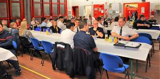 Blick in die Versammlungsrunde in der Garagenhalle der FFW Creuzburg.