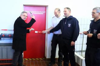 Anlässlich einer gemeinsamen Ausbildung aller Feuerwehren der Stadt Amt Creuzburg im Gerätehaus Mihla erfolgte nach längeren Um- und Einbauarbeiten die Einweihung der neuen Atemschutzwerkstatt.