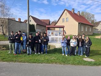 Am 08. April war es wieder so weit und die Schüler des Samuel-Heinicke-Förderzentrums aus Leipzig haben den Geburtsort von Samuel Heinicke besucht. Am Frühvormittag konnten wir 26 Schüler und 6 Begleitpersonen in Nautschütz willkommen heißen. Die 15-jährigen Schüler haben den Hof in Nautschütz, wo Samuel Heinicke lebte, besucht. Vielen Dank an Frau Ingrid Schönherr, dass sie es uns jedes Jahr ermöglicht, den Hof zu besuchen und interessante Geschichten über Samuel Heinicke zu hören. Danach haben wir kurz beim Freundschaftsbaum namens Paul, den wir vor drei Jahren zusammen mit den taubstummen Schülern gepflanzt haben, begutachtet und uns das Denkmal von Samuel Heinicke angeschaut. Dieses Jahr ist aus einem Projekt zwischen den Jugendlichen der Regelschule Schkölen und dem Förderzentrum Leipzig ein informatives Tafelbild über das Förderzentrum und Samuel Heinicke entstanden. Beim herrlichen Wetter sind wir nach Zschorgula in die Kirche (vielen Dank an Frau Marianne Bach und unserem Pfarrer, Herrn Roßdeutscher für die Möglichkeit eine kurze Andacht zu hören) und ins Schulmuseum gegangen. Auch hier vielen Dank an Familie Graneist/Steidl, die jedes Jahr die Tür des Schulmuseums öffnen und uns in den alten Klassenraum tauchen lassen. Das diesjährige Treffen ließen wir beim gemeinsamen Essen ausklingen. Hiermit möchte ich mich bei der Firma K + B Kies und Beton GmbH Kieswerk für das problemlose Nutzen des Raumes und Frau Orlamünde sowie der Bäckerei Mächler für die tolle Unterstützung bedanken.