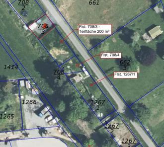 | Flurstück-Nr.: | 708/3 - 200 m² (Teilfläche); 708/4 - 79 m²; 1267/1 - 295 m² |