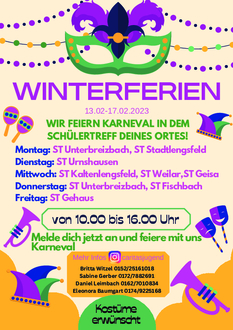 In den Winterferien bieten wir in verschiedenen Orten (Schülertreffs) Ferienspiele an. Für Kinder von neun bis 14 Jahren.