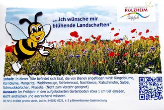 Bienen, Hummeln, Schmetterlinge und Co sind unersetzlich. Als Blütenbestäuber sorgen sie für die Vielfalt von Pflanzen und Tieren. Doch wo finden diese Insekten heute noch Nahrung? Auf Feldern Wiesen und öffentlichen Flächen und in Gärten blüht es immer weniger. Wir möchten das ändern! Die Bienenverluste der letzten Jahre und der Rückgang der Schmetterlinge und Wildbienen haben die Öffentlichkeit für die Notlage der Blüten besuchenden Insekten sensibilisiert. Der Südpfalz-Tourismus Verbandsgemeinde Rülzheim e.V. möchten Menschen zum Handeln ermutigen, überall – auch auf dem kleinsten Fleckchen eigener Erde – eine blühende Landschaft zu schaffen. Wir wollen mitwirken eine blühende Landschaft zu gestalten in der sich Menschen, Pflanzen und Tiere wohlfühlen. Ab sofort erhalten Bürgerinnen und Bürger der Verbandsgemeinde Rülzheim kostenlos ein Saatgutpäckchen mit einer einjährigen Saatgutmischung heimischer Wildpflanzen - die besonders Honigbienen mögen. Die Saatguttütchen sind im Tourismusbüro im Rathaus in Rülzheim erhältlich. Die Abgabe erfolgt in Kleinstmengen ab 14. März, Dienstag bis Freitagvormittag, solange der Vorrat reicht.