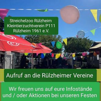 Hiermit möchten wir eine herzliche Einladung an alle Rülzheimer Vereine aussprechen, sich mit Infoständen oder Aktionen an unseren Festen zu beteiligen. Im vergangenen Jahr bereicherten bereits viele Vereine unsere Feste im Streichelzoo mit ihren tollen Aktionen und sorgten für strahlende Kinderaugen. Wir wünschen uns, dass dies weiterhin so bleibt und freuen uns auf zahlreiche Rückmeldungen von euch. Hier unsere großen Veranstaltungen im Jahr 2025: Osterfest im Streichelzoo (Samstag, 19.04. und Montag, 21.04.2025), Kinder- und Familienfest (Samstag, 14.06. und Sonntag, 15.06.2025) und Herbstfest (Samstag, 13.09. und Sonntag, 14.09.2025). Anmeldungen bitte telefonisch an unseren Vorstand Mario Muth (Tel. 0152 53731008) richten und fleißig weitersagen.