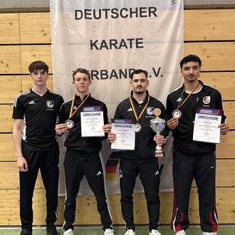 Am vergangenen Wochenende, dem 21.März 2026, fand die Deutsche Meisterschaft der Leistungsklasse statt – ein Turnier auf höchstem nationalem Niveau, geprägt von intensiven Duellen und starken Leistungen. Im Einzelwettbewerb der Disziplin Kata gingen Victor Gschwind, Rayan Ziza und Fabio Münch an den Start. Victor und Rayan präsentierten sich in der ersten Runde in überzeugender Form und konnten ihre Gegner souverän besiegen. Mit präziser Technik, Ausdrucksstärke und Wettkampfhärte setzten sie ein klares Zeichen. In der zweiten Runde traf Rayan auf einen besonders starken Gegner, der sich im weiteren Verlauf des Turniers den dritten Platz sichern konnte. Trotz einer guten und engagierten Leistung musste er sich in diesem Duell geschlagen geben. Die Begegnung verdeutlichte einmal mehr, wie eng das Leistungsniveau in der Spitze ist. Im Teamwettbewerb traten anschließend Rayan Ziza, Victor Gschwind und Egor Schröder gemeinsam an. In der Vorrunde mussten sie sich dem starken Team aus Bremen geschlagen geben. Im Kampf um Platz 3 zeigte das Trio jedoch seine ganze Klasse. Mit großem Teamgeist, Entschlossenheit und einer überzeugenden Darbietung ließen sie nichts anbrennen und sicherten sich souverän die Bronzemedaille. Insgesamt blicken die Athleten auf ein intensives und erfolgreiches Wochenende zurück. Neben starken Einzelleistungen konnten sie sich vor allem im Team mit einem verdienten Podestplatz belohnen – ein Ergebnis, auf das sich in Zukunft ausbauen lässt.