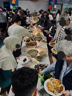 Letzte Woche fand bereits zum zweiten Mal unser gemeinsamer Iftar Abend an der Schule statt – organisiert von der SV und der AG „Schule ohne Rassismus – Schule mit Courage“. Und was sollen wir sagen: Noch mehr Teilnehmer*innen als im letzten Jahr, ein unglaublich reichhaltiges Buffet und vor allem ganz viele schöne gemeinsame Momente. Es wurde zusammen gegessen, gelacht und sich ausgetauscht – genau das, was unsere Schulgemeinschaft ausmacht. Die Stimmung war einfach besonders. Wir sind dankbar für diesen gelungenen Abend und freuen uns jetzt schon riesig auf das nächste Jahr!
