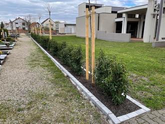 Der Friedhof in Rülzheim wird immer grüner: Durch Baumpflanzungen und Anlage von Rasenflächen entwickelt sich das Gelände zum Friedpark. Auf dem gesamten Areal wurden inzwischen 35 Bäume verschiedener Arten, im südlichen Teil eine Esskastanie als „Lebensbaum“ gepflanzt. Zudem wird an mehreren Stellen der Riesel durch Rasen ersetzt. Dazu wurde der Boden zehn Zentimeter abgetragen und ein Rasensubstrat eingebracht. Derzeit entsteht eine weitere dieser Flächen hinter der Trauerhalle. Die Rasenflächen sind trittfest und können auch von Rollstuhlfahrern befahren werden. Auch eine Erweiterung der Urnen-Plattengräber im alten Teil des Friedhofs steht noch an. „Für das Frühjahr sind die Arbeiten nun weitgehend abgeschlossen, im Spätjahr ersetzen wir weitere Rieselflächen durch neuen Rasen“, so Bauhofleiter Bernhard Mohr. Er bittet die Bürgerinnen und Bürger, sich bei Fragen direkt an ihn zu wenden: „Wir erklären gerne, was wir aktuell auf dem Friedhof machen. Sprechen Sie uns einfach an.“
