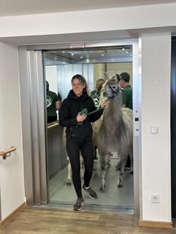 Adele und Pünktchen kamen zu Besuch bei den Bewohnerinnen und Bewohnern der Braun’schen Stiftung: Die beiden zutraulichen Lamas waren bereits im Vorjahr zu Gast gewesen und freuten sich offenbar sehr auf das Wiedersehen mit den Menschen im Stift. Ermöglicht hatte die Aktion der Förderverein, die Organisation übernahm das Team Freizeit/Soziale Betreuung.