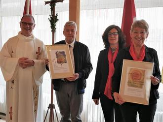 Im Rahmen des feierlichen Ostergottesdienstes am 10.04.23 freute sich Pfarrer Michael Kolb langjährige Mitglieder vom Chor St. Mauritius Rülzheim ehren zu dürfen. Für 50 Jahre aktives Singen durfte Elfriede Kaufhold die Urkunde, unterzeichnet von Bischof Dr. Karl-Heinz Wiesemann entgegennehmen. Bei der Überreichung der Urkunde erinnerte Pfarrer Kolb an die Wirkungsstätten von Frau Kaufhold. Begonnen hatte sie ihre gesangliche Laufbahn im Kirchenchor St. Anna in Kuhardt. Diesen unterstütze sie fünf Jahre. Anschließend wechselte sie in den Chor St. Mauritius. Zwischen 2002 und 2006 zeigte sie sich zudem verantwortlich als Vorsitzende der Chorgemeinschaft. Für 40 Jahre Chorleitertätigkeit im Chor erhielt Heinz Kern eine Urkunde, unterzeichnet vom Präses der Chorgemeinschaften im Bistum Speyer, Pfarrer Dominik Geiger. Heinz Kern übernahm im Jahre 1983 den Chor von Schwester Katharina. Er ist somit der am längsten aktive Dirigent seit Bestehen des Chors. In einem kleinen Rückblick seiner kirchenmusikalischen Laufbahn erinnerte der Geehrte an seine Anfänge als Organist in Rheinzabern. Erst 16 Jahre alt und deswegen nicht im Besitz eines Führerscheins wurde er jeden Sonntagmorgen zuhause in Rülzheim abgeholt und nach dem Gottesdienst wieder zurückgebracht. Mittlerweile müsse er jedoch selbst fahren. Pfarrer Kolb bedankte sich bei den Jubilaren für ihr langjähriges Engagement und hoffe, ebenso wie die Sängerinnen und Sänger des Chors, dass beide noch lange dem Chor die Treue halten. Mit dem Angebot an alle Anwesenden zur gesanglichen Unterstützung des Chors immer mittwochs um 19:00 Uhr im Pfarrheim wurden die Ehrungen beendet. Die Sängergemeinschaft freut sich über jedes neue Mitglied.