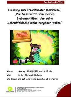 Kamishibai (japanisches Erzähltheater): „Die Geschichte vom kleinen Siebenschläfer, der seine Schnuffeldecke nicht hergeben wollte“ am Montag, den 13.05.2024 um 16:15 Uhr