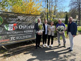 Denisa Manole und Andrei Prisoschi sind seit 4. April mit ihrer „Vero Osteria“ neues Pächterpaar des Restaurants beim Tennisclub in Rülzheim. Die beiden treten mit ihrem Team damit die Nachfolge des im Januar tragischerweise viel zu früh verstorbenen Basilio Madeo an. „Einen Bezug zu ‚Basi‘ gibt es durch Andreis Mutter Simona, die dort gearbeitet hat. Sie gehört zum Küchenteam und macht den Pizzateig“, erklärt Manole. Auch einige andere Mitarbeiterinnen und Mitarbeiter des Teams waren zuvor im „Da Basi“ tätig. Insgesamt gehören sechs Bedienungen und drei Küchenmitarbeitende zur Mannschaft der „Vero Osteria“. Manole und Prisoschi stammen beide aus Rumänien und leben seit sieben beziehungsweise neun Jahren in Deutschland. Sie betreiben auch das „Blue Lagoon“ in Speyer, das nun hauptsächlich von einem Geschäftspartner geführt wird, während sich das Paar auf Rülzheim konzentriert. Schon davor arbeiteten beide seit Jahren nebenberuflich in der Gastronomie. „Wir haben beide in der freien Wirtschaft gearbeitet, aber die Liebe zur Gastronomie war stärker“, sagt Prisoschi. Neben traditioneller italienischer Küche soll es auch Tagesgerichte sowie spezielle Aktionen geben, unter anderem After-Work-Events an den Freitagen. Auch für das Gelände selbst haben die beiden Pläne, unter anderem einen Sandkasten für Kinder wollen sie anschaffen. „Wir hören auf das Feedback unserer Bedienungen, die seit Jahren dabei sind. Sie wissen, was die Gäste sich wünschen“, erklärt Manole. Einen Lieferdienst gebe es derzeit noch nicht, vorbestellen und abholen könne man Gerichte aber. Geöffnet ist die „Vero Osteria“ dienstags bis samstags von 11.30 bis 14 Uhr sowie von 17 bis 22.30 Uhr. Sonntags ist das Restaurant – bei schönem Wetter - durchgehend geöffnet. Ortsbürgermeister Michael Braun und der für Wirtschaft du Verkehr verantwortliche Beigeordnete Michael Bahlinger freuen sich darüber, dass ein schneller Übergang gelungen sei. „Die ‚Vero Osteria‘ bietet durch ihre Nähe zum Strandbad, dem Camping Resort und der Alla-Hopp-Anlage einen idealen Anlaufpunkt für Touristinnen und Touristen und Bürgerinnen und Bürger unserer Verbandsgemeinde. Wir sind sehr glücklich, dass ihr euch für uns entschieden habt.“ Theo Dreyer, Beigeordneter der Verbandsgemeinde für Wirtschaft und Tourismus, betonte, dass es für die Beschäftigten ein zusätzliches Angebot für die Mittagspause gebe, sei immens wichtig. „Aber auch für den ganzen Landkreis ist es ein Glücksfall, dass es wieder ein Restaurant an dieser touristisch ideal gelegenen Location gibt.“