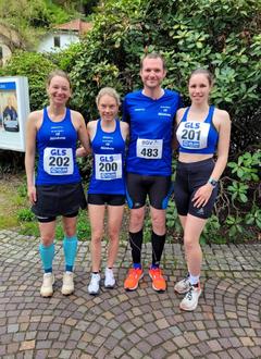 Die Deutschen Berglaufmeisterschaften wurden in diesem Jahr beim BGV-Hundseck-Berglauf in Bühlertal ausgetragen. Für unsere Athleten daher eine ungewöhnlich kurze Anfahrt, da Berglaufmeisterschaften selten im Schwarzwald, häufiger jedoch in den Alpen ausgetragen werden. Mit Tanja Hellmann, Annika Müller und Julia Schäffner hatte die LG eine starke Frauenmannschaft am Start. Auf der 10km langen Strecke mussten insgesamt 660 positive Höhenmeter überwunden werden. Bereits auf Rang 4 der Gesamtwertung erreichte Tanja Hellmann das Ziel und überzeugte in sehr starken 48:12 min. Lediglich 12 Sekunden fehlten ihr zu Bronze. „Ich bin absolut zufrieden mit dem Ergebnis. Platz 4 ist zwar immer etwas ärgerlich, die Freude überwiegt aber. Ich hätte nicht gedacht, dass ich bei einer Deutschen Meisterschaft noch so weit vorne mitlaufen kann“, so Tanja nach dem Rennen. Für Annika Müller war es der erste Berglauf überhaupt. Zuvor hatte sie mit ihrer Trainerin Tanja die Strecke im Training bereits abgelaufen. Nach 1:01:28h überquerte Annika als 45. Frau die Ziellinie, dies bedeutete außerdem Platz 6 der WU20. „Es hat mir sehr geholfen, die Strecke bereits zu kennen. Es war nicht ganz so schlimm, wie ich befürchtet hatte“, so Annika im Ziel. Nur knapp hinter Annika folgte nach 1:03:07h Julia Schäffner im Ziel. Für Julia bedeutete dies Platz 52 in der Gesamtwertung und Platz 4 in der W40. In der Mannschaftswertung belegten die Drei den sehr guten 6 Platz. Beim offenen Lauf des Hundseck-Berglaufes war Stefan Hellmann mit am Start. Er lief lange Zeit zusammen mit Julia, erreichte das Ziel dann ganz knapp vor ihr in 1:03:06h. Stefan belegte damit Platz 28 in der M35.