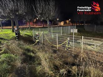 Am Silvesterabend meldete die Leitstelle einen Gebüschbrand am Sportplatz in Leimersheim. Beim Eintreffen der ersten Einsatzkräfte konnte dies auch bestätigt werden. Mittels Schnellangriff konnte das Feuer zügig abgelöscht werden. Anschließend wurde die umliegende Fläche bewässert und mittels Wärmebildkamera kontrolliert.