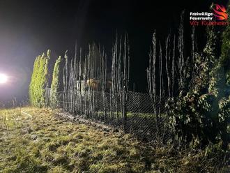 Kurz nach Mitternacht wurden wir zu einem Heckenbrand in einem Garten alarmiert. Beim Eintreffen war kein Gebäude in Gefahr. Die Angriffstrupps löschten unter Atemschutz die brennende Hecke mithilfe zweier C-Strahlrohre ab. Die Brandstelle wurde nochmals kontrolliert und im Anschluss konnten die Kräfte auch wieder ins Feuerwehrgerätehaus einrücken.