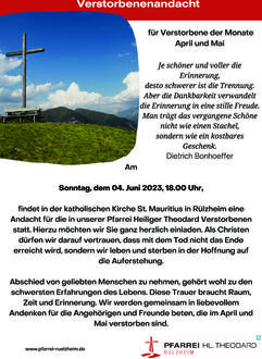 Rülzheim, 18:00 Uhr Andacht für die Verstorbenen der Monate April und Mai