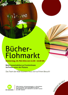 Di.: 15:00 Uhr bis 18:00 Uhr, Mi.: 10:00 Uhr bis 12:00 Uhr, Do.: 17:00 Uhr bis 19:00 Uhr sowie Sa.: von 10:00 Uhr bis 12:00 Uhr Online-Vormerkungen sowie Verlängerungen können Sie unter www.bibkat.de/ruelzheim vornehmen. Tel: 07272/919529; E-Mail: koeb.ruelzheim@bistum-speyer.de Wenn Sie unsere Onleihe mit über 10 000 E-Books und E-Magazinen kostenlos nutzen möchten, kommen Sie bei uns in der Bücherei vorbei und melden sich an!