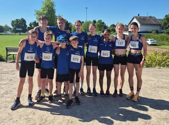 Jede Menge Medaillen, einige Titel und viele Bestzeiten gab es für die Athleten der Leistungsgruppe bei den Bezirksmeisterschaften in Kandel. Über 800m war Max Müller wieder einmal nicht zu schlagen. Er verbesserte seine Bestzeit auf 2:10 min und siegte damit klar in der M15. Lucas Ostermeyer wurde im selben Lauf in 2:30 min 3. der M15. Maik Schilling konnte sich um ganze 7 Sekunden steigern und lief in schnellen 2:22 min zum Sieg in der M14. In der M13 lief Florentin Brand ungefährdet zum Titel. Mit 2:22 min stellte auch er eine neue persönliche Bestleistung auf. Auf Rang 2 der M13 kam Laurin Göbbels mit 2:27 min (ebenso eine neue Bestzeit). In 2:53 min belegte Ilai Schindler Rang 4 der M13, Tim Kempenich folgte auf Rang 5 mit 2:54 min. Ilai war außerdem im Sprint über 75m am Start. Hier belegte er in 11,94 sek den 5. Platz. Über 800m in der M12 lief Sebastian Bär in 3:06 min zu einer neuen persönlichen Bestleistung. In den weiblichen Klassen sorgte Rebecca Riedel für den Titel über 800m der Frauen. Sie verbesserte sich um 4 Sekunden auf 2:24 min. Für Ronja Koller gab es gleich zweimal Silber. Im 800m-Lauf der WU18 in 2:36 min sowie im 200m-Lauf der WU18 in 30,97 sek. Mia Hahn belegte in 2:44 min Rang 3 der WU18 über 800m. Lia-Marie Kunz lief in neuer Bestzeit von 2:52 min auf Rang 5, Rodas Weldeghebriel folgte in 2:59 min (neue Bestzeit) auf Rang 6 der WU18. Bronze gab es für Lia-Marie außerdem noch über die 200m. Dafür benötigte sie 32,03 sek. Klara Lutz lief die 800m der W13 in 3:03 min und belegte damit Platz 4. Über die 4x100m lief unsere Staffel der WU18 mit Lia-Marie, Rodas, Mia und Ronja in 60,73 sek zu Bronze.