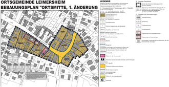 Für den Ortskern der Gemeinde Leimersheim besteht der Bebauungsplan „Ortsmitte“ aus dem Jahr 2012. Dieser setzt für den zentralen Teilbereich beidseits der Unteren Hauptstraße ein Mischgebiet gemäß § 6 BauNVO fest. Für die umliegenden Bereiche entlang der angrenzenden Straßen setzt der Bebauungsplan ein Allgemeines Wohngebiet gemäß § 4 BauNVO fest.