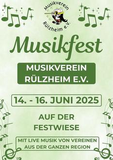 Von Samstag, 14. Juni bis Montag, 16.06.2025 lädt der Musikverein Rülzheim wieder zum traditionellen Musikfest auf der Festwiese ein. Freuen Sie sich auf ein musikalisches Wochenende mit beliebten Kapellen aus der Region, einer vielfältigen Auswahl an Speisen und Getränken - und natürlich bester Stimmung! Ob Musik genießen, gut essen oder nette Menschen treffen: Das Musikfest verspricht auch in diesem Jahr unvergessliche Momente für alle Generationen.