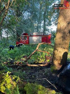 Gestern Abend alarmierte uns die Leitstelle Landau zu einem Flächenbrand zwischen Kuhardt und Leimersheim. Vor Ort bestätigte sich die Lage. Es waren bereits ca. 500 qm eines Waldstücks an mehreren Stellen abgebrannt. Die Einsatzleitung forderte daraufhin weitere Kräfte der Verbandsgemeinde Rülzheim und die Einheit Rheinzabern nach, um den Brand schnellstmöglich einzudämmen. Dabei wurde Wasser von den Seen vor Ort entnommen und zudem ein Pendelverkehr zwischen der Einsatzstelle und der Ortsgemeinde Kuhardt gefahren. Die Einsatzkräfte löschten die Brandherde ab und kontrollierten mehrmals die Stellen mittels Wärmebildkamera, um ein weiteres Aufflammen zu verhindern. Dabei wurden die Einsatzkräfte durch die Drohneneinheit der Verbandsgemeinde sowie der Drohne des DLRG unterstützt. Da auch mehrere Bäume Feuer gefangen hatten und aufgrund dessen gefällt werden mussten, kamen zwei Mitarbeiter des Landesforsten RLP. Außerdem vor Ort war Verbandsbürgermeister Matthias Schardt, die Sanitätsbereitschaft Feuerwehr sowie die Einheit Jockgrim und Wörth mit weiteren Tanklöschfahrzeugen, die jedoch nicht mehr benötigt wurden.