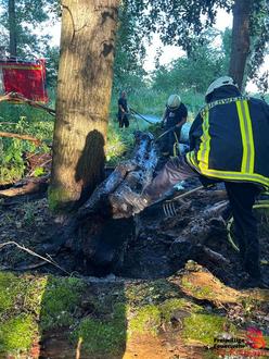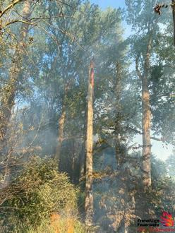 Heute morgen kontrollierten 5 Einsatzkräfte aus Rülzheim und Kuhardt nochmals die Brandstelle und löschten dabei zwei rauchende Bäume ab.