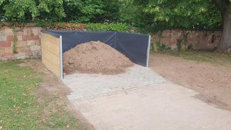Schüttbox errichtet: Lagerort für Erde auf dem Friedhof