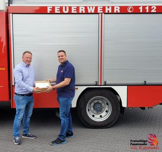 Am Donnerstag, 29. Juni hatten wir einen der Geschäftsführer, der Firma Karl Steiger GmbH aus Ludwigshafen. Herrn Mark Döhler zu Gast im Feuerwehrhaus Rülzheim. Im Gepäck hatte er eine neue Vega Sonde als Ersatz für die anfällige und defekte Füllstandssonde im Tanklöschfahrzeug. Die neue Radarsonde wurde an den Wehrleiter der Verbandsgemeinde, Andreas Leingang als Spende übergeben. “Der Karl Steiger GmbH war es schon immer wichtig, soziale Projekte außerhalb des beruflichen Umfeldes zu fördern. Als wir von unserem Mitarbeiter, der sich bei der Feuerwehr Rülzheim engagiert hörten, dass dort ein Austausch mit einer Sonde ansteht, waren wir sofort bereit diese zu spenden und so unseren Beitrag zu einer funktionierenden und modernen Feuerwehr zu leisten. Wir kennen auch die Risiken und Gefahren, da wir im Bereich E-Mobilität als auch im Anlagenbau speziell für Gefahrenstoffe arbeiten. So ist es für uns eine Selbstverständlichkeit Mitarbeiter, die sich in solch wichtigen Hilfsorganisationen engagieren zu unterstützen.“ so die kurze Stellungnahme des Geschäftsführers.”