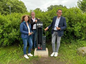 Der Radtourismus hat in den letzten Jahren erheblich an Bedeutung gewonnen. Gerade an Wochenenden, wenn viele mit dem Fahrrad unterwegs sind, kann ein platter Reifen oder ein anderer Defekt schnell die Tour unterbrechen. Wenn dann das Bordwerkzeug fehlt und die Geschäfte geschlossen sind, erweist sich eine rund um die Uhr verfügbare Radservicestation als unverzichtbar. Am Radparkplatz der Alla-hopp-Anlage in Rülzheim gibt es nun die erste Radservicestation in Rülzheim. Diese Station ermöglicht es Fahrradfahrern, kleinere Reparaturen selbst durchzuführen. Ausgestattet mit verschiedenen Werkzeugen und einer Handpumpe, die über Adapter für alle Ventiltypen verfügt, steht die Reparatursäule rund um die Uhr zur Verfügung. Ein QR-Code auf der Vorderseite der Station führt zu Online-Publikationen mit Anleitungen zur Behebung von Fahrraddefekten, was die Nutzung der Station noch einfacher macht. Der Radservicestation war erste Preis beim Stadtradeln 2023 bei dem die Verbandsgemeinde Rülzheim, als Gewinner hervorging. Der Landkreis Germersheim überreichte die Station als Preis für das beste Team mit den meisten gefahrenen Kilometern. Bürgermeister Matthias Schardt, Tourismusleiterin Petra Becker und der stellvertretende Vorsitzende des Tourismusvereins Günther Dreyer freuen sich über diese zusätzliche Verbesserung der Radservice-Qualität in der Verbandsgemeinde. „An Wochenenden und bei gutem Wetter sind zahlreiche Radfahrer in unserer Region unterwegs“, sagte Dreyer.“ Die neue Radservicestation ist nicht nur ein Gewinn für Radtouristen sondern auch für Einheimische“ so der Vorsitzende des Tourismusvereins Matthias Schardt.