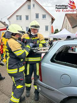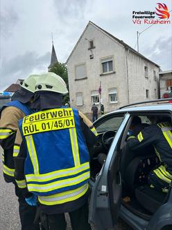 Die beiden Personen des PKWs wurden mit dem Spreizer und der Schere aus ihrer Zwangslage befreit und unter Anleitung medizinisch, fachgerecht aus dem Fahrzeug gerettet.