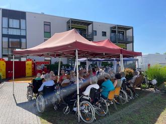 Artistik, Comedy und ein Streichelzoo sowie ein Saxophon-Konzert: Im Juni gab es zwei tolle Events für die Bewohnerinnen und Bewohner der Braun’schen Stiftung. Der Zirkus Frankordi machte wie schon im letzten Jahr im Stift Station, um den Bewohnerinnen und Bewohnern ein buntes Showprogramm mit Clownerie, Artistik und Comedy zu bieten. Dazu gab es Popcorn und Zuckerwatte. Auf der Wiese hinter dem Gebäude gab es außerdem einen Streichelzoo zu bestaunen. Dort grasten Kaninchen, Enten, Lämmchen, Alpakas und Ponys. Wessen Herz mehr für Musik schlug, der konnte ein Saxophon-Konzert der Gruppe Cowei genießen, die die Bewohnerinnen und Bewohner im Innenhof mit ihrem abwechslungsreichen Repertoire unterhielten. Finanziert wurden beide Veranstaltungen vom Förderverein der Braun’schen Stiftung. Geschäftsführer Walter Hoffmann und Einrichtungsleiterin Sabrina Braun freuten sich über die „gelungene Abwechslung für unsere Bewohnerinnen und Bewohner. Wir bedanken uns herzlich beim Förderverein, der dieses Event ermöglicht hat.“