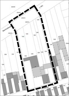 | • im Westen: | durch die östlichen Grenzen des Flurstücks 1261 sowie einer Linie von der nordöstlichen Ecke des Flurstückes 1261 lotrecht über das Flurstück 2536/18 auf die südliche Grenze des Flurstücks 2524/29. |