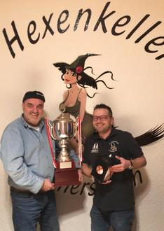 Am Montag, den 9. Januar, fand zum Jahresauftakt im Gasthaus „Zum Hexenkeller“ traditionell die jährliche Meisterfeier der Montagswürfler statt. In einem packenden Zielfinish und dem Gewinn einer Riesenkasse beim letzten Würfelstammtisch vor Weihnachten, sicherte sich Roland Werling den stets schwer umkämpften Titel „Würfelmeister 2022“ und durfte hierfür den begehrten Wanderpokal im neuen Jahr mit nach Hause nehmen (siehe Bild). Den zweiten Platz in der Jahreswertung belegte Thomas Ochsenreither, gefolgt vom letztjährigen Herbstmeister Peter Klein, welcher sich den 3. Platz auf dem Stockerl sicherte. Den 15. und letzten Platz belegte David Klein, welcher hierfür als Trostpreis die „Rote Laterne“ in Empfang nehmen durfte (siehe Bild). Die meisten Spiele bei unseren Stammtischen im letzten Jahr absolvierten Jörg Schunke (74 Spiele), Michael Ochsenreither (70) und Peter Klein (68). Gratulation hierfür und großen Dank für Eure stets verlässliche Teilnahme an unseren Würfelabenden. Die beiden Würfelkassen am Abend gewann mit deutlichem Abstand dann Peter Klein und durfte hierfür, neben einem nicht unerheblichen Kassengewinn, auch unseren Wochenpokal „die Gewinnersau", für eine Woche mit nach Hause nehmen. Nach ausgiebiger Meisterfeier in geselliger Runde, wurden im Rahmen einer kurzfristig einberufenen Versammlung noch einige Punkte in unserer Satzung etwas nachgeschärft und abschließend beschlossen. Das war wichtig und teils auch überfällig, da wir über die Coronazeit in den letzten drei Jahren bemerkt hatten, dass einige Festlegungen die unseren Würfelstammtisch sowohl beim virtuellen Spiel während Corona und danach beim Präsenz-Spiel im Gasthaus, nicht immer einheitlich optimal waren. Aber lassen wir Corona nun endgültig hinter uns und gehen hoch motiviert ins neue Würfeljahr 2023. Unser nächstes Event findet am 20. Januar 2023 im Bürgerhaus Leimersheim statt, wenn es dann wieder heißt: „Batmans Freunde, sind auch unsere Freunde!“