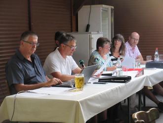 Ein straffes, gut organisiertes Programm erwartete die 41! Mitglieder des GV Männerchor mit Frauenchor unter der Pergola des Vereinshauses. Gut gestärkt, und mit traditionell musikalischem Auftakt (Grüne Reben) begrüßte der 1. Vorsitzende Marco Thomas die Teilnehmer und erinnerte an die seit der letzten Veranstaltung verstorbenen Mitglieder. In seinem „PowerPoint-unterstützten“ Bericht rief er die Ereignisse des vergangenen Vereinsjahres noch einmal eindrucksvoll ins Gedächtnis zurück. Auch Kerstin Hoffmann bediente sich dieses schon seit Jahren bewährten visuellen Mediums und informierte die Zuhörer speziell über die Frauenchor-Aktivitäten. An den beiden selbstständig agierenden Chorgruppen möchte Chorleiter Michael Bißon weiterhin festhalten, machte aber auf notwendige Veränderungen in den einzelnen Singstimmen aufmerksam. Ein letzter Appell an den Singstundenbesuch beendete seinen Bericht. Einen „knackig kurzen“, aber durchaus positiven Blick auf die finanzielle Lage des Vereins vermittelte im Anschluss daran Kassenführer Christian Niederreuther. Das bestätigte auch Rechnungsprüfer Reinhard Koch, der die Transaktionen mit seinem Kollegen Jochen Braun unter die Lupe genommen hatte. Somit war die Vorstandschaft entlastet und ein sehr gut gelaunter Wahlleiter Klaus Heid führte durch den umfangreichen Punkt: Neuwahlen. Bis auf eine satzungsgemäße Veränderung blieb alles beim alten, da sich alle Vorstands- und Ausschussmitglieder bereit erklärt hatten, weiterzumachen, somit wurden sie auch für die nächsten 2 Jahre wieder gewählt. Geschäftsführender Vorstand: Marco Thomas (1. Vorsitzender) Kerstin Hoffmann (stellv. Vorsitzende) Thomas Seelinger (stellv. Vorsitzender) Elvira Langenberg (Schriftführerin) Christian Niederreuther (Kassenwart) Dem Vereinsausschuss gehören an: Wolfgang Gehrlein, Dieter Gerber, Werner Heiter, Doris Hoffmann, Helmut Hoffmann, Ursula Hoffmann, Sigrid Kaufhold, Edgar Kupper, Thomas Matheis, Jürgen Rund, Ilona Tenner, Ernst Trauth und Andrea Walther. Da es zum abschließenden Punkt: Aussprachen, Kenntnisgaben, Wünsche und Anträge keine Wortmeldungen gab, konnten Chorleiter Michael (Viel Glück und viel Segen) und der neu gewählte Vorsitzende Marco nach einer guten Stunde, exakt um 20.42 Uhr die 116. Jahreshauptversammlung des GV Männerchor mit Frauenchor beenden. Jetzt ist erst einmal Sommerpause.