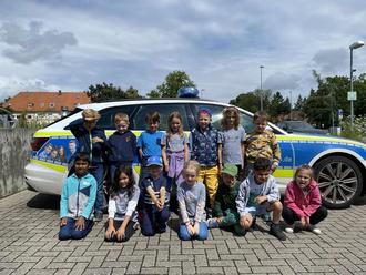 Für die Schulspatzen ist es am Donnerstag, 04. Juli nach Germersheim gegangen zur Polizeiwache. An der Tür wurden sie schon von Herrn Steuerwald erwartet. Angekommen in seinem Büro wurde ihnen gezeigt, wie man Personen finden kann, die man sucht. Danach ist es weiter gegangen in den Notruf Raum, dort kam gerade ein Anruf herein und die Kinder konnten viel entdecken. Nun war es so weit das Highlight worauf die Kinder sich Tage vorher schon gefreut hatten. Sie durften eine Zelle begutachten und alle waren sehr gespannt als die Tür für einige Sekunde zugemacht wurde. Dann ging es schon weiter in das nächste Abenteuer und die Kinder haben erkennungsdienstlich ihre Fingerabdrücke auf ein Papier abgeben dürfen. Als es endlich aufgehört hatte zu regnen ist es nach draußen gegangen und dort durften sie sich in eines der Polizeiautos setzen und dieses erkunden. Ein interessanter und aufregender Nachmittag, die, die Schulspatzen erleben durften. Wir bedanken uns recht herzlich bei Herrn Steuerwald für dieses tolle Erlebnis.